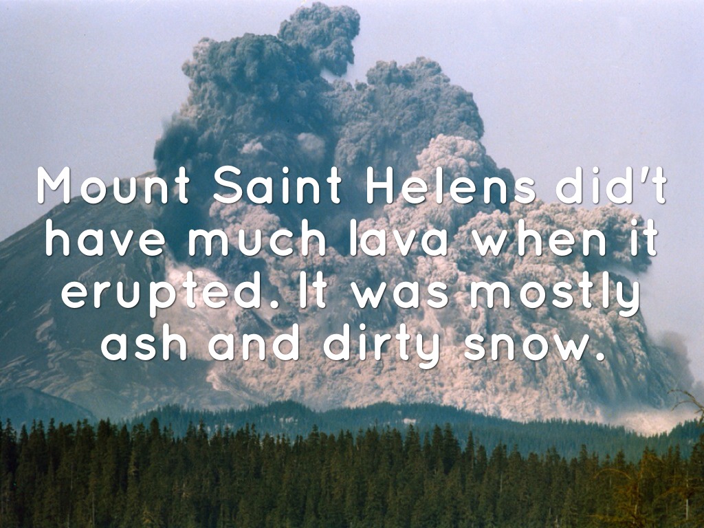 Mount Saint Helens did't have much lava when it erupted. It was mostly ash and dirty snow.