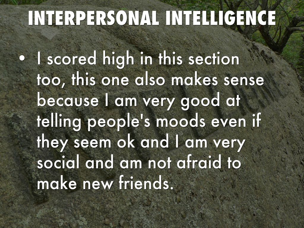 • I scored high in this section too, this one also makes sense because I am very good at telling people's moods even if they seem ok and I am very social and am not afraid to make new friends.