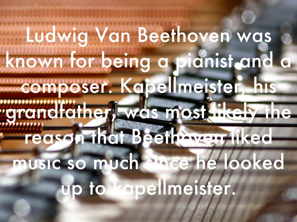 Ludwig Van Beethoven was known for being a pianist and a composer. Kapellmeister, his grandfather, was most likely the reason that Beethoven liked music so much since he looked up to kapellmeister.