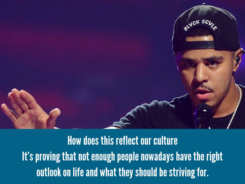 As with many of J. Cole’s songs, Cole reflects on two different juxtapositions in No Role Modelz. The first that he, himself grew up with No Role Modelz because his own father wasn’t around. On the other hand he references how hip-hop as, we know it, is absent of role models and in the same token doesn’t want to be rescued, hip-hop wants to remain static and predictable because it’s selling, it’s easy and offers little to no disapproval amongst the masses.