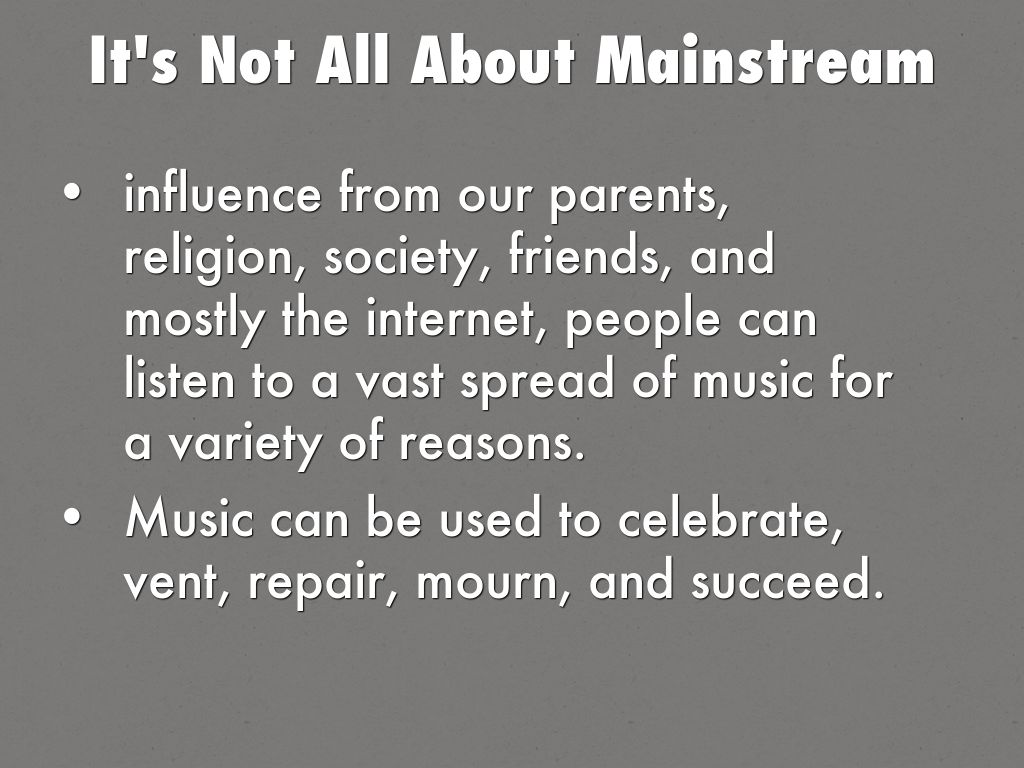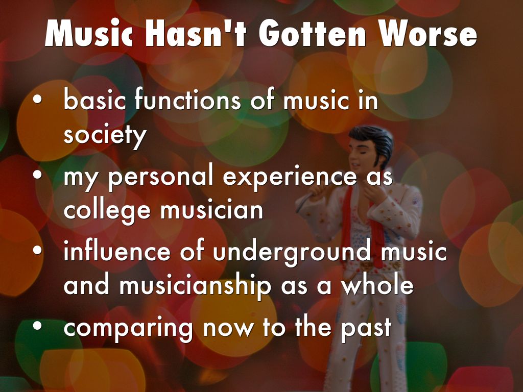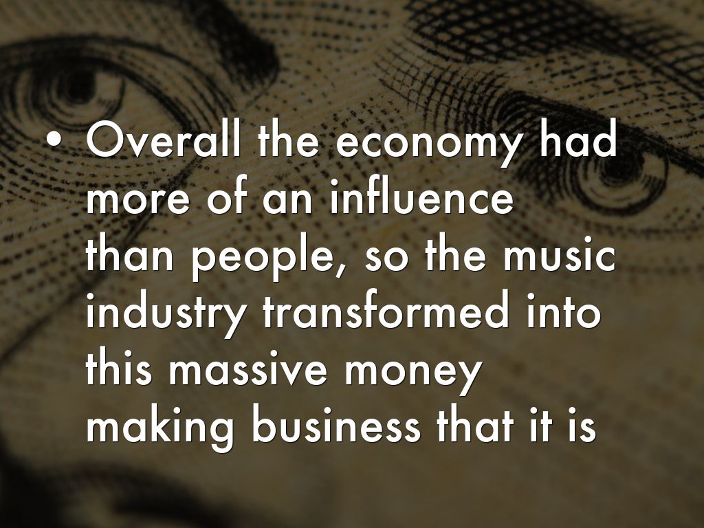 it was easy to see the influence that society had on music as a whole. With always be able to analyze the music of the past along with crazy cultural changes, it can be said that music has always created and explored.