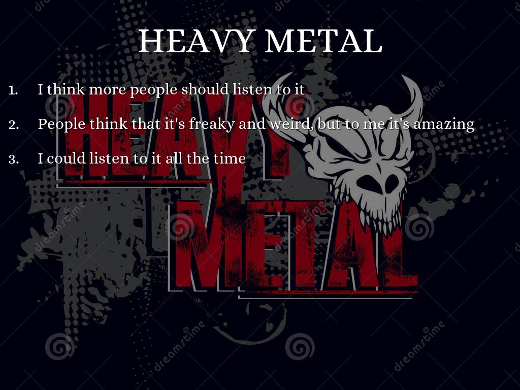 Heavy Metal is my favorite type of music and I think people should listen to it. Even though people think it is weird, but if you look deep down in the words, they mean something.