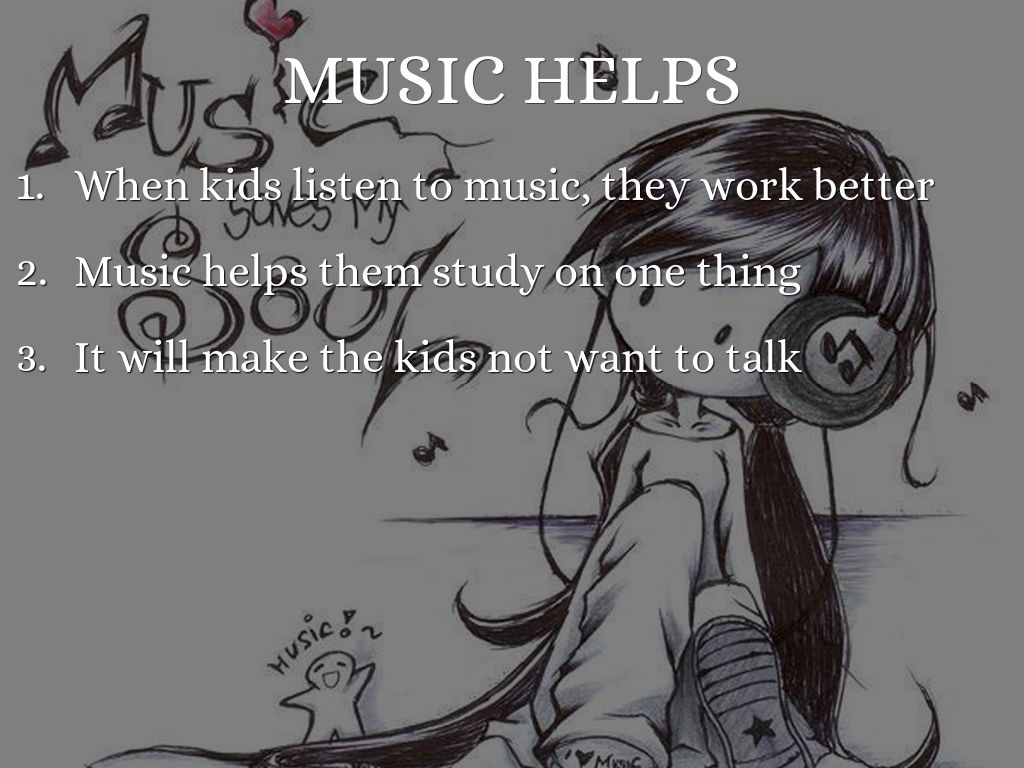 Music helps kids consentrate on work. If kids listen to music then they wouldn't work through times where they have to be quiet.
