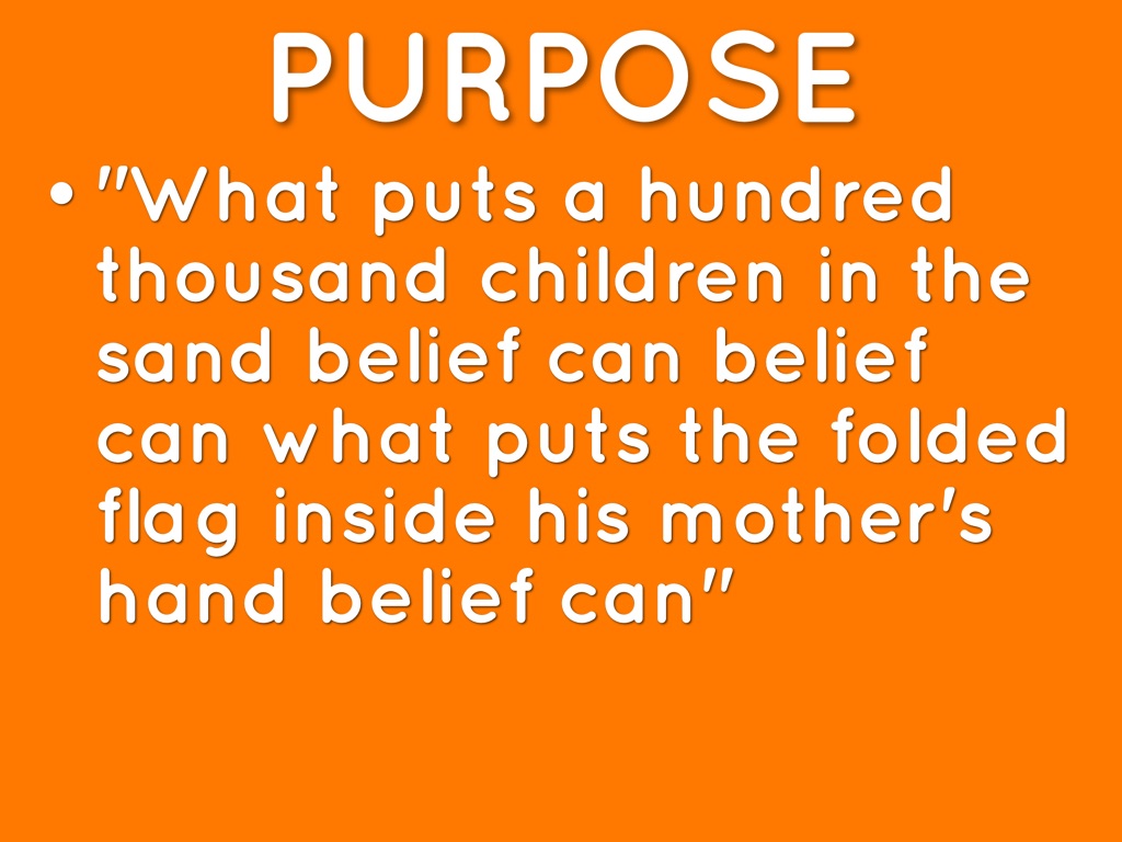 • "What puts a hundred thousand children in the sand belief can belief can what puts the folded flag inside his mother's hand belief can"