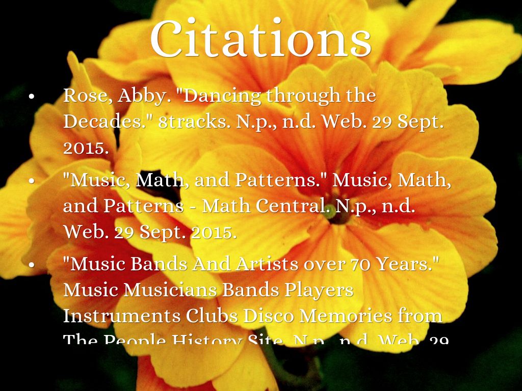Rose, Abby. "Dancing through the Decades." 8tracks. N.p., n.d. Web. 29 Sept. 2015.