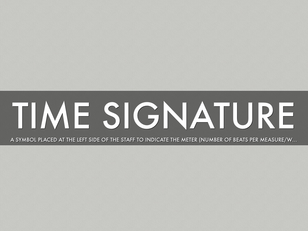A SYMBOL PLACED AT THE LEFT SIDE OF THE STAFF TO INDICATE THE METER (NUMBER OF BEATS PER MEASURE/WHICH NOTE GETS THE BEAT)