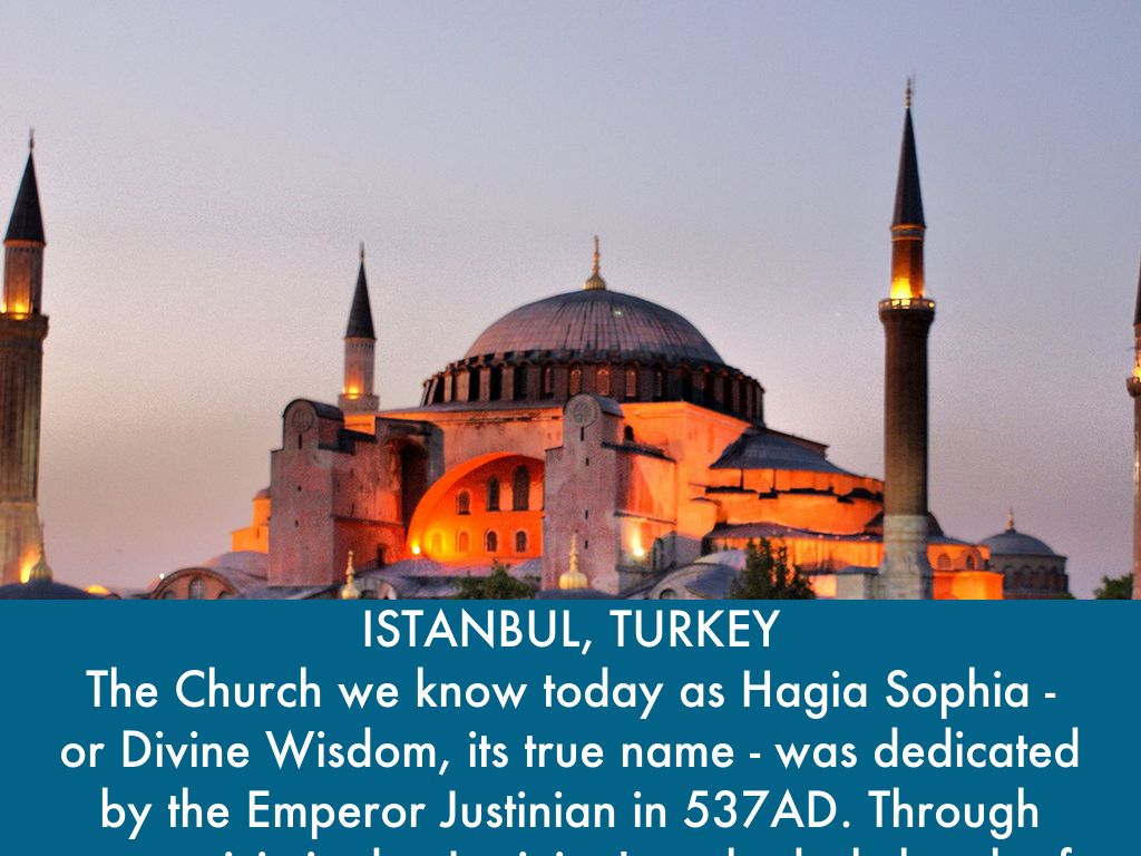 The Church we know today as Hagia Sophia - or Divine Wisdom, its true name - was dedicated by the Emperor Justinian in 537AD. Through many vicissitudes Justinian's cathedral church of Constantinople still stands, its soaring vaults and amazing dome are a testaments to the human spirit, the engineering talents of its builders and divine inspiration.