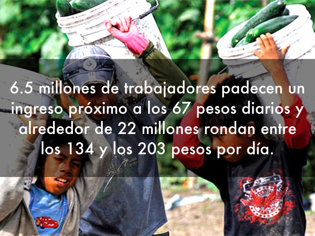 6.5 millones de trabajadores padecen un ingreso próximo a los 67 pesos diarios y alrededor de 22 millones rondan entre los 134 y los 203 pesos por día.