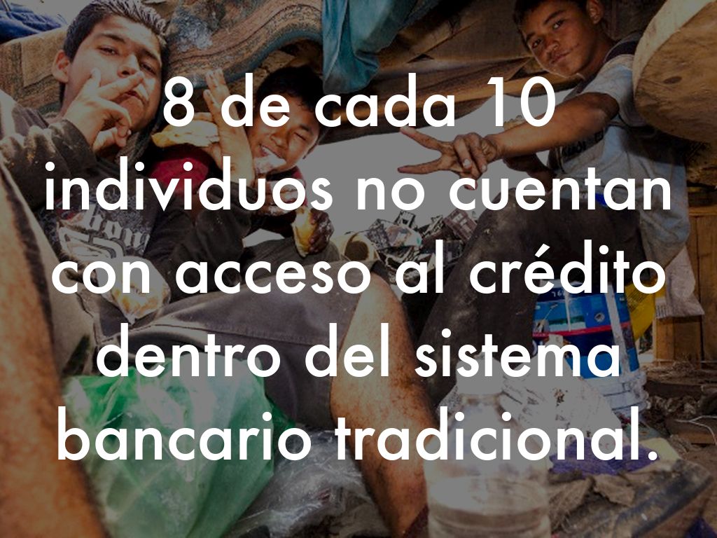 8 de cada 10 individuos no cuentan con acceso al crédito dentro del sistema bancario tradicional.