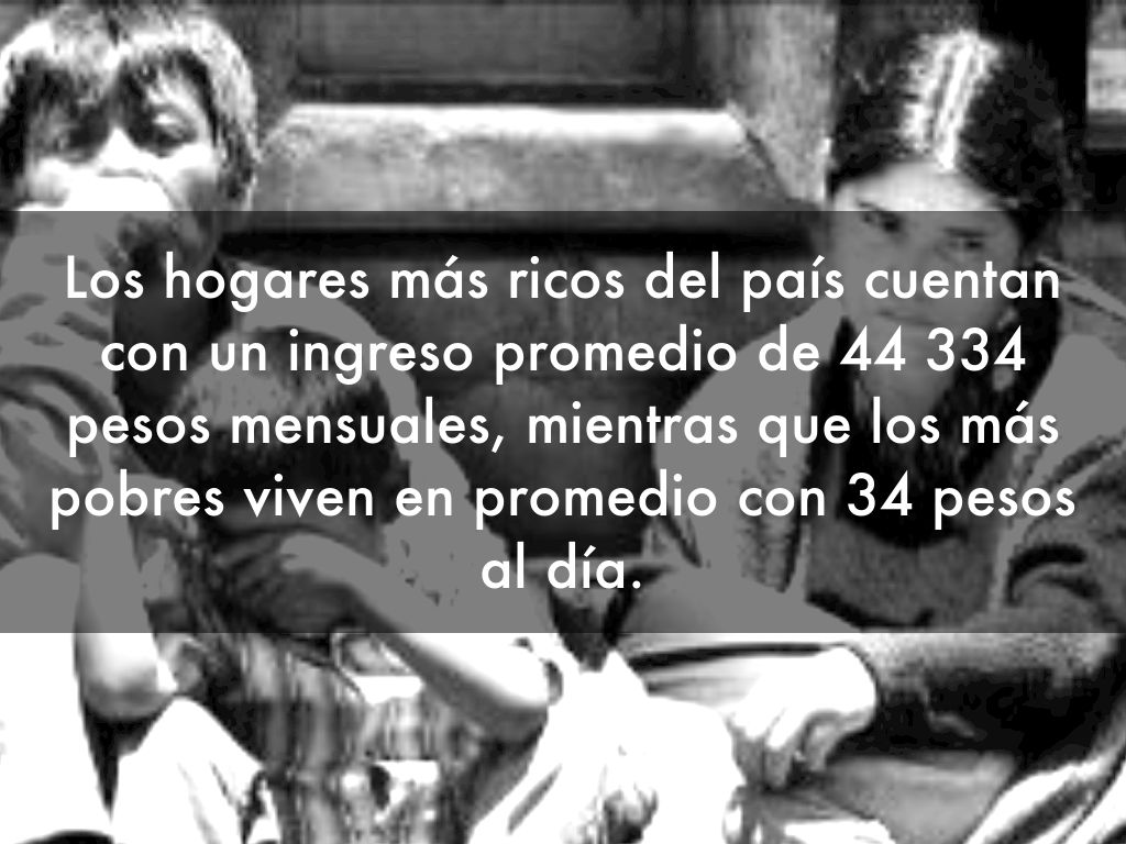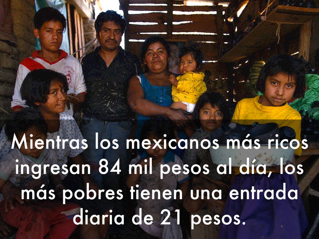Mientras los mexicanos más ricos ingresan 84 mil pesos al día, los más pobres tienen una entrada diaria de 21 pesos.