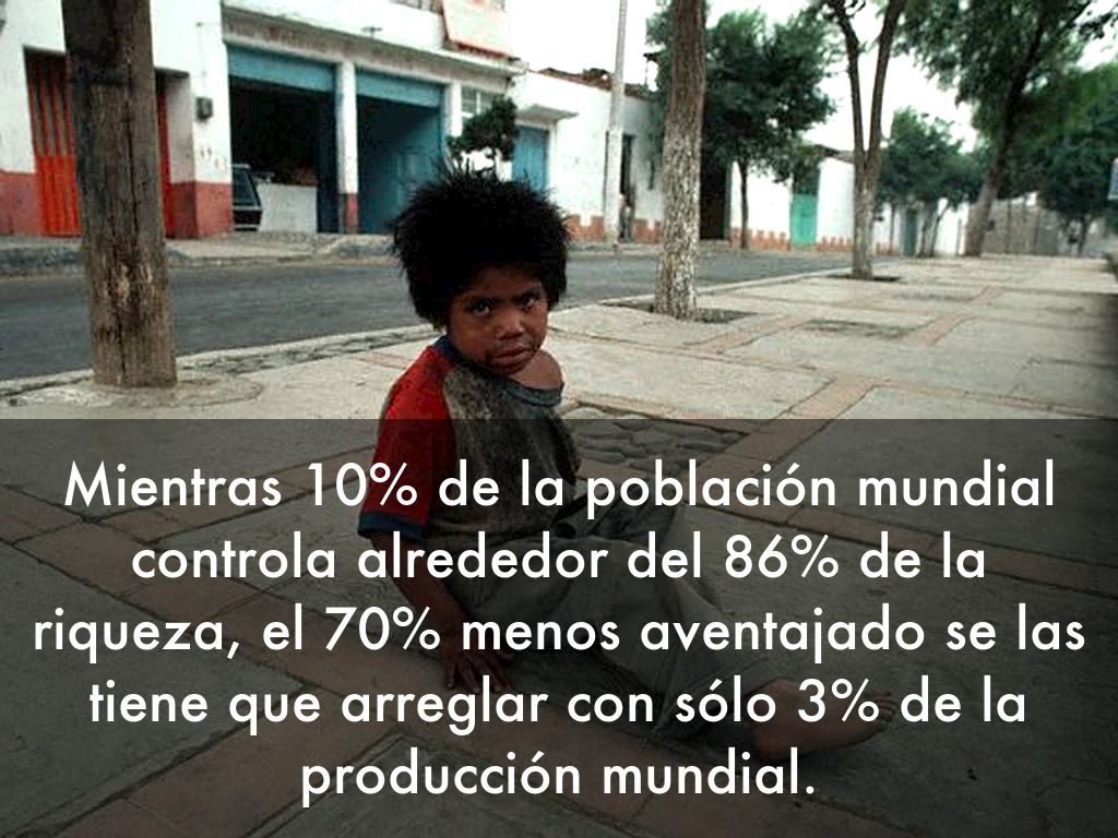 Mientras 10% de la población mundial controla alrededor del 86% de la riqueza, el 70% menos aventajado se las tiene que arreglar con sólo 3% de la producción mundial.