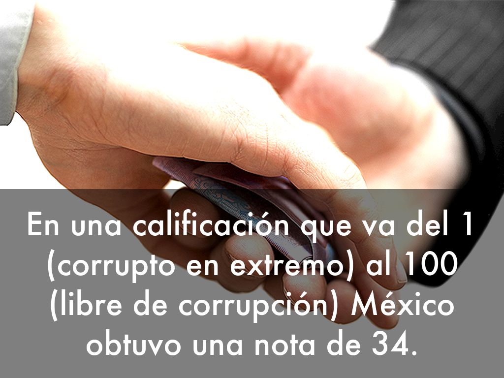 En una calificación que va del 1 (corrupto en extremo) al 100 (libre de corrupción) México obtuvo una nota de 34.