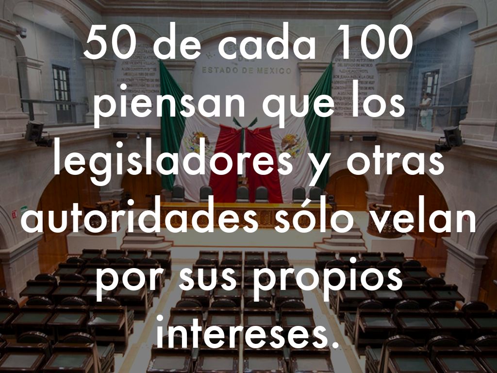 50 de cada 100 piensan que los legisladores y otras autoridades sólo velan por sus propios intereses.