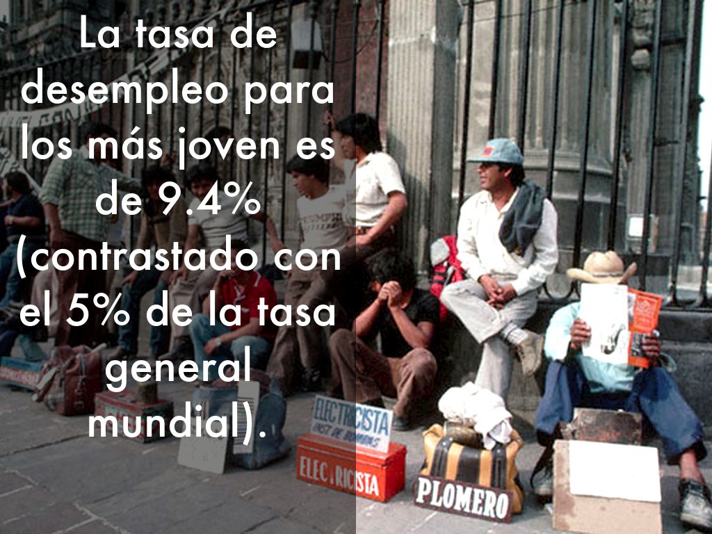 La tasa de desempleo para los más joven es de 9.4% (contrastado con el 5% de la tasa general mundial).