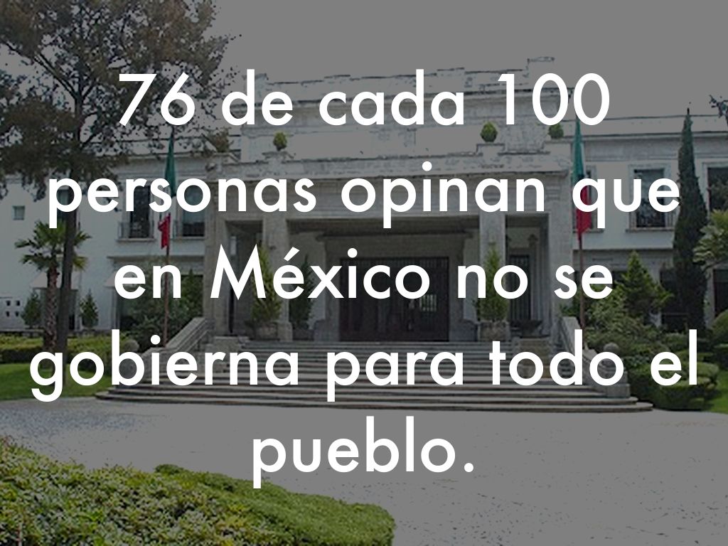 76 de cada 100 personas opinan que en México no se gobierna para todo el pueblo.