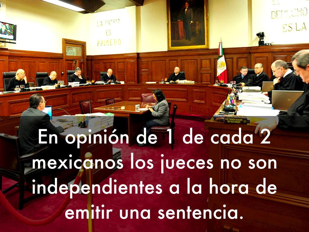 En opinión de 1 de cada 2 mexicanos los jueces no son independientes a la hora de emitir una sentencia.