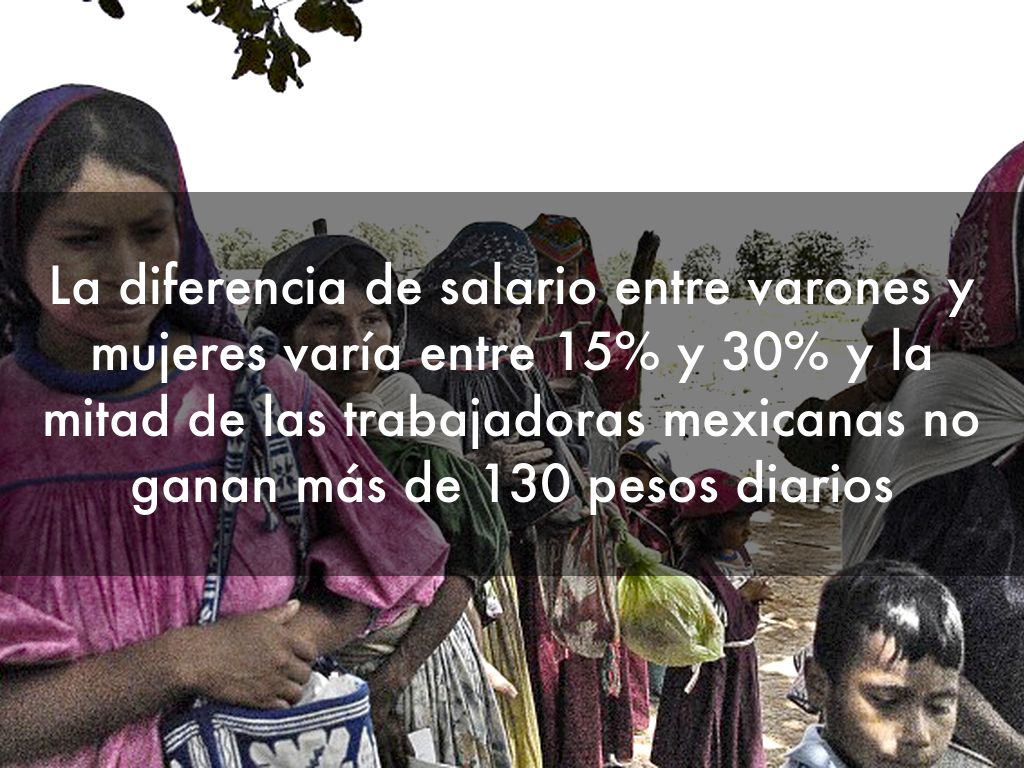 La diferencia de salario entre varones y mujeres varía entre 15% y 30% y la mitad de las trabajadoras mexicanas no ganan más de 130 pesos diarios
