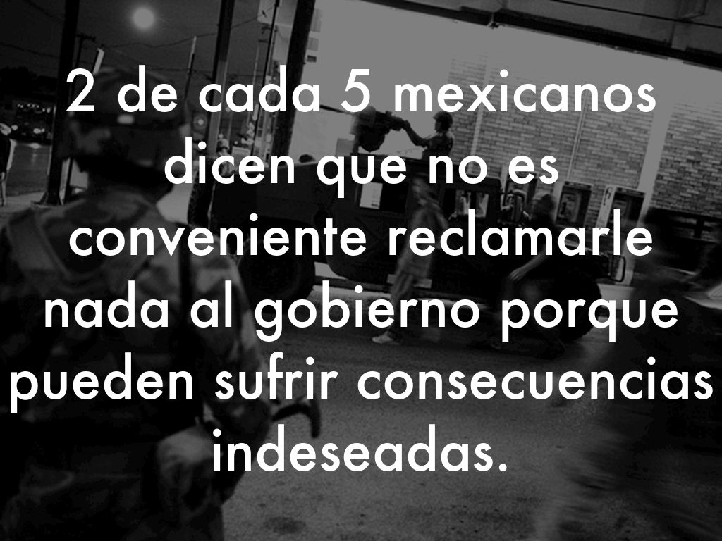 2 de cada 5 mexicanos dicen que no es conveniente reclamarle nada al gobierno porque pueden sufrir consecuencias indeseadas.