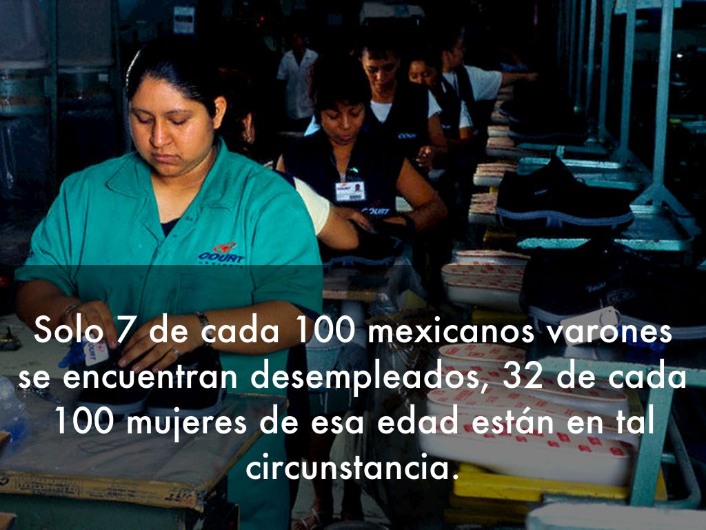Solo 7 de cada 100 mexicanos varones se encuentran desempleados, 32 de cada 100 mujeres de esa edad están en tal circunstancia.