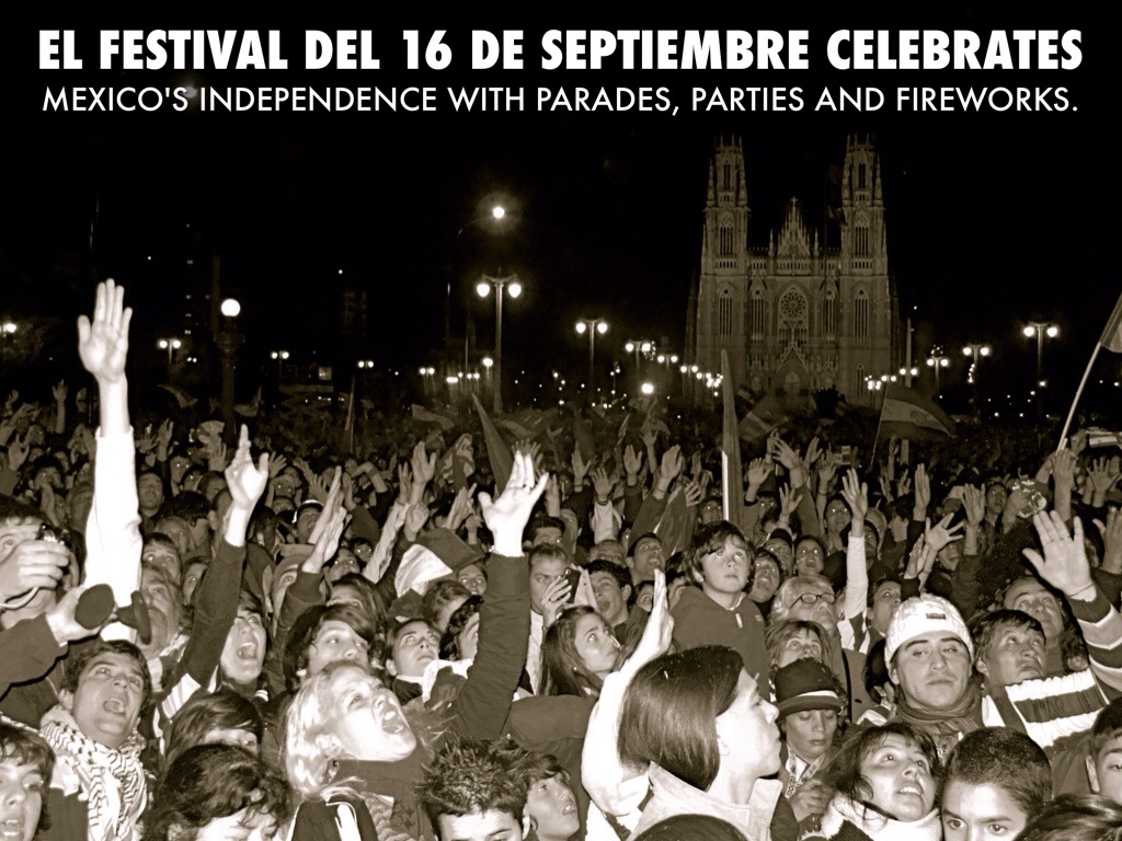 MEXICO'S INDEPENDENCE WITH PARADES, PARTIES AND FIREWORKS.