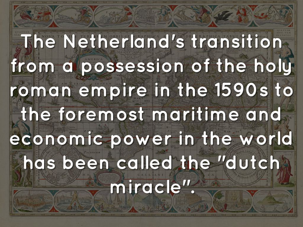 The Netherland's transition from a possession of the holy roman empire in the 1590s to the foremost maritime and economic power in the world has been called the "dutch miracle".
