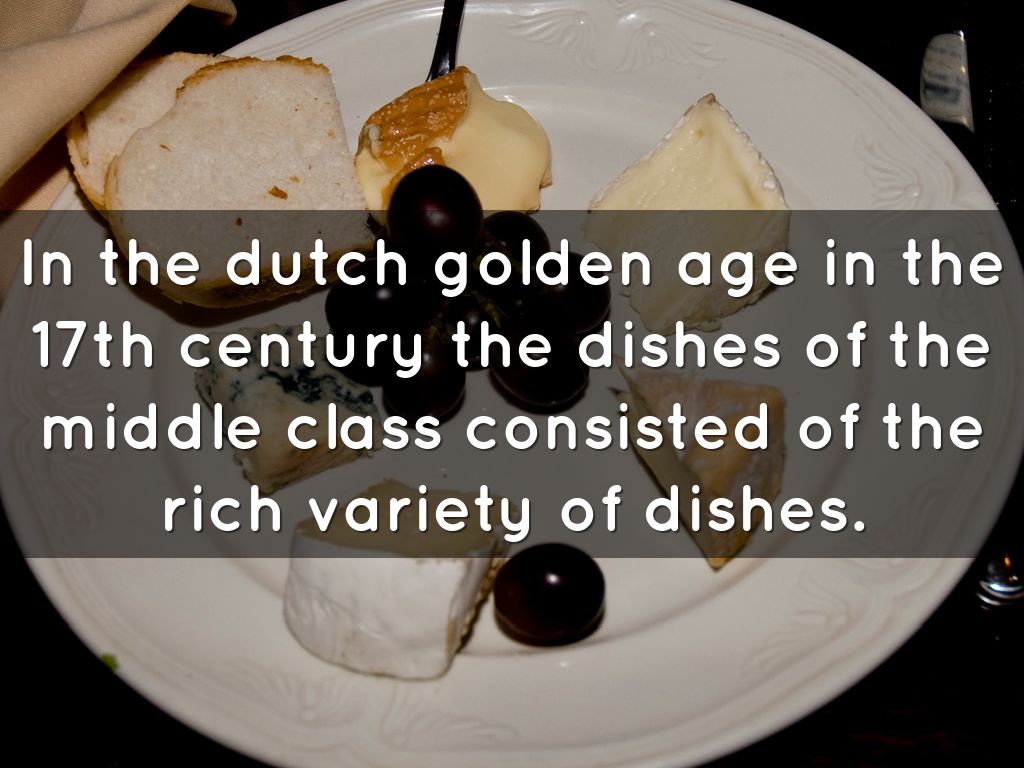 In the dutch golden age in the 17th century the dishes of the middle class consisted of the rich variety of dishes.