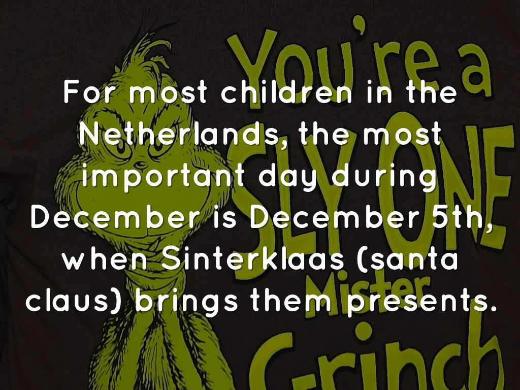 For most children in the Netherlands, the most important day during December is December 5th, when Sinterklaas (santa claus) brings them presents.