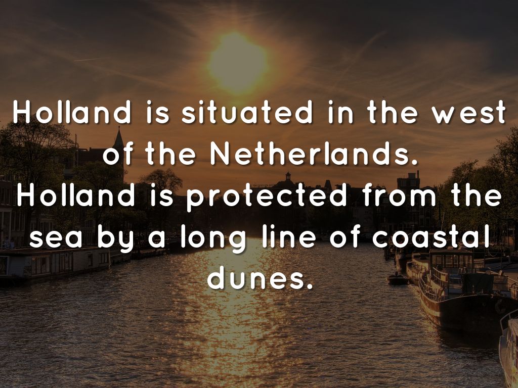 Holland is situated in the west of the Netherlands.