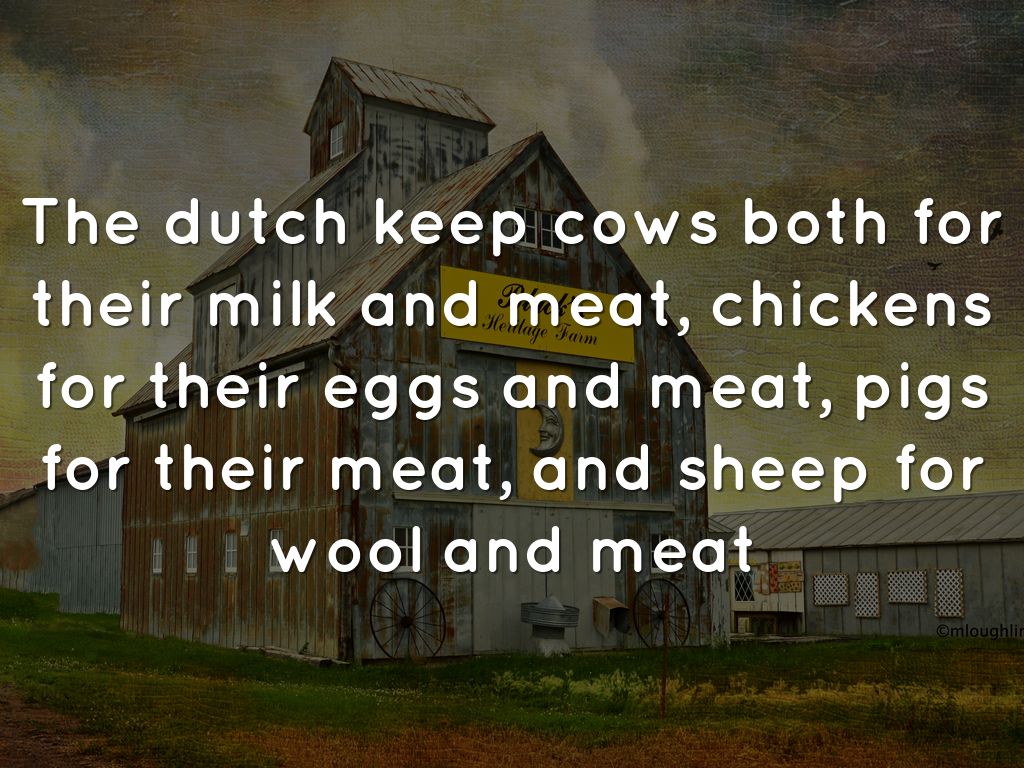 The dutch keep cows both for their milk and meat, chickens for their eggs and meat, pigs for their meat, and sheep for wool and meat