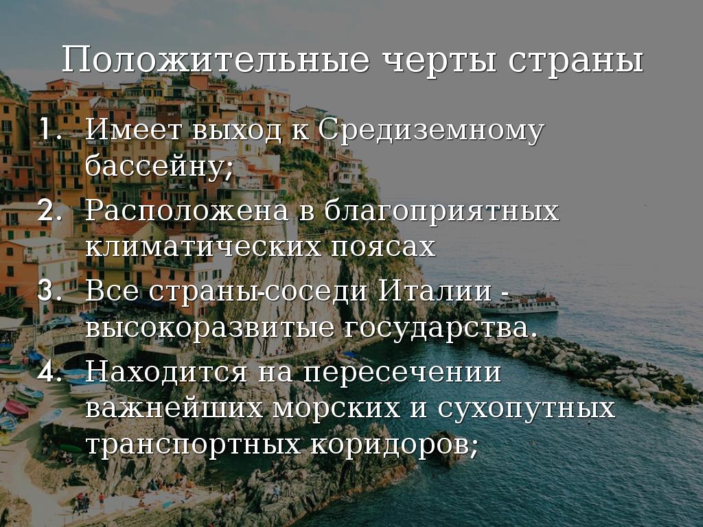 • Все страны-соседи Италии - высокоразвитые государства.
