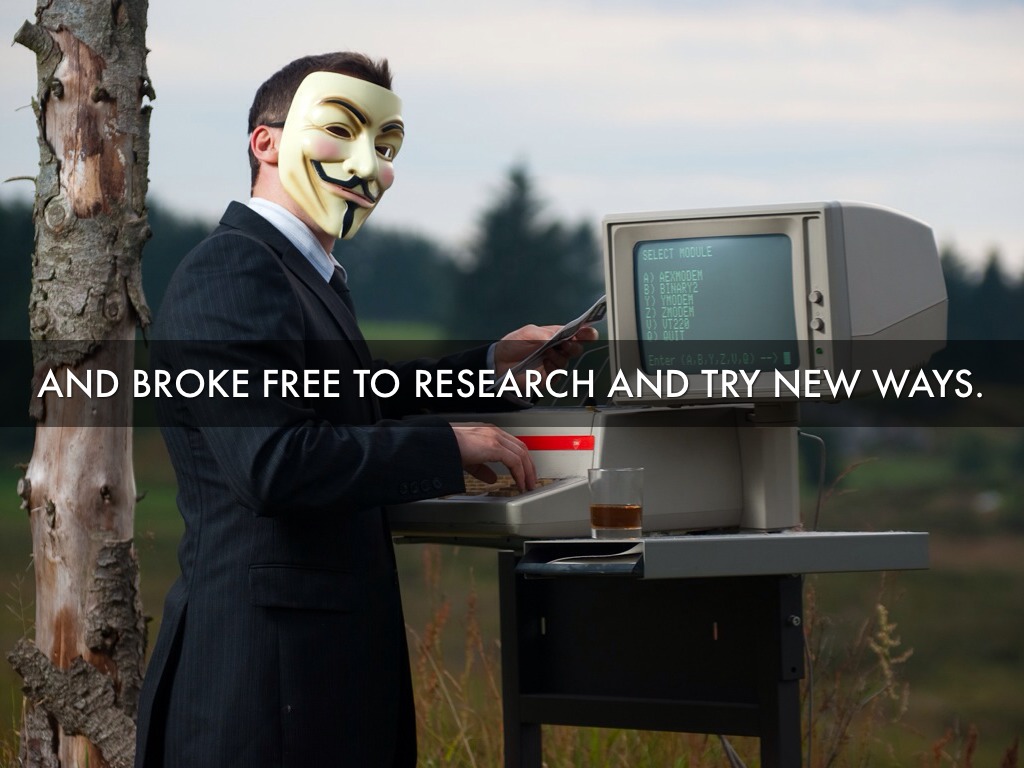 AND BROKE FREE TO RESEARCH AND TRY NEW WAYS.