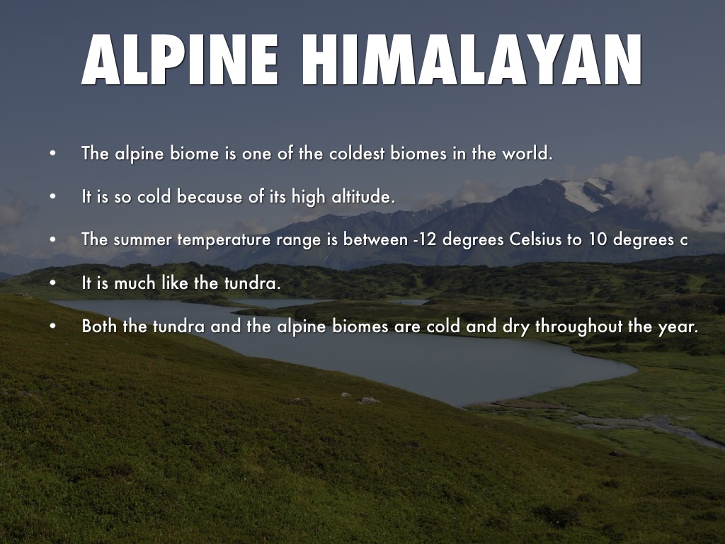 Both the tundra and the alpine biomes are cold and dry throughout the year.