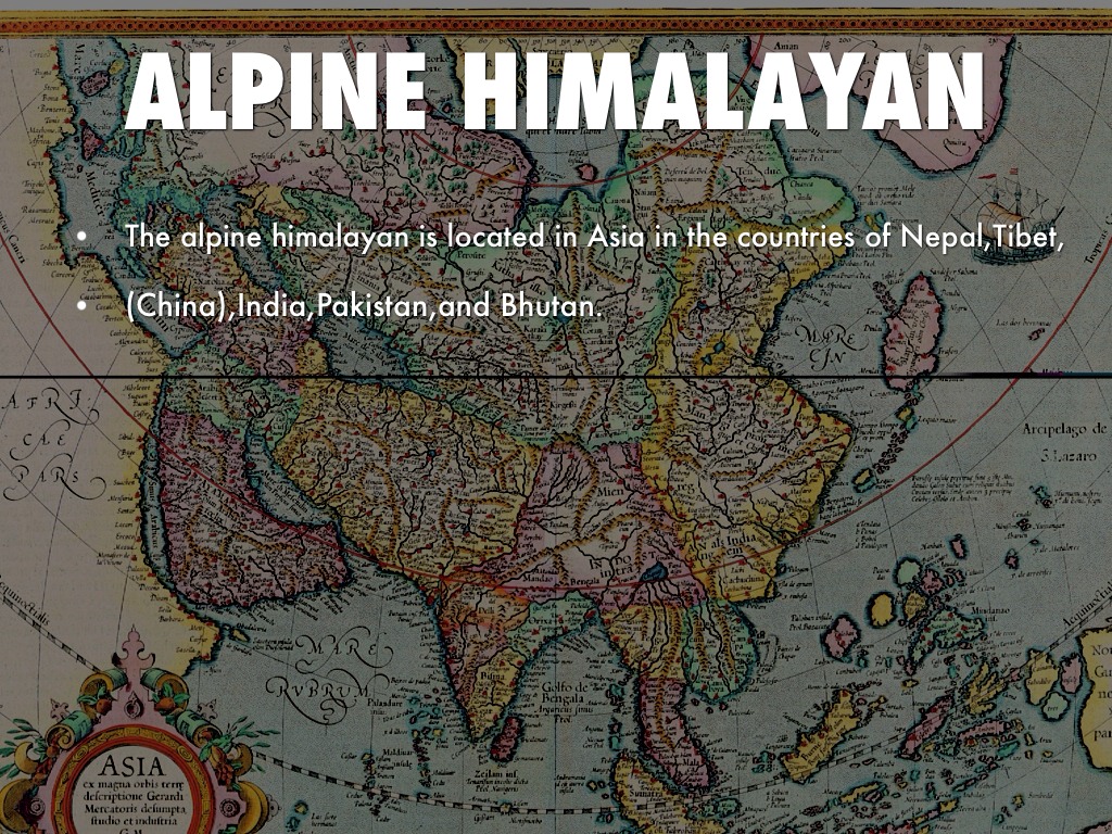 The alpine himalayan is located in Asia in the countries of Nepal,Tibet,