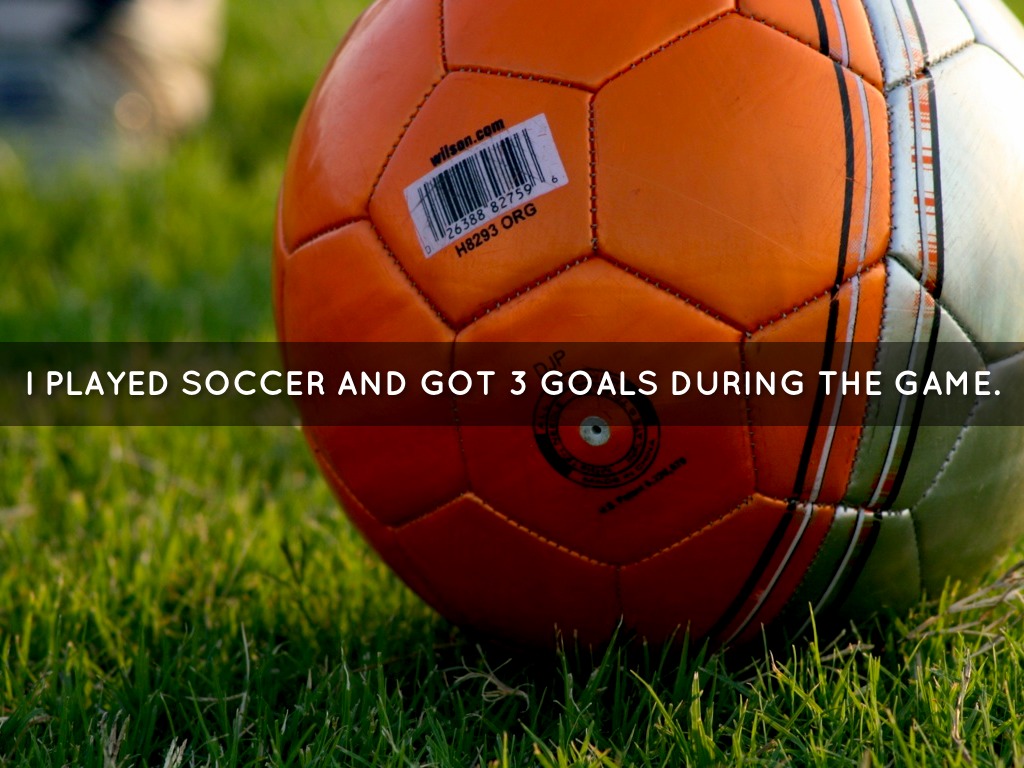 I PLAYED SOCCER AND GOT 3 GOALS DURING THE GAME.