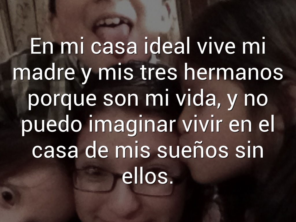En mi casa ideal vive mi madre y mis tres hermanos porque son mi vida, y no puedo imaginar vivir en el casa de mis sueños sin ellos.