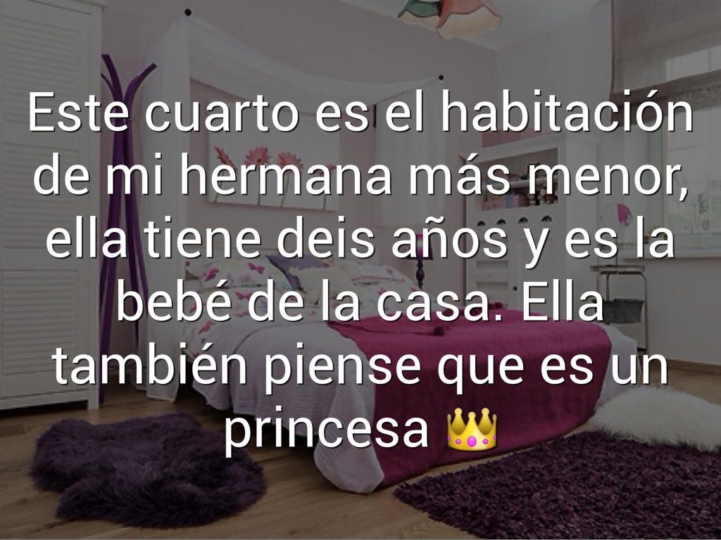 Este cuarto es el habitación de mi hermana más menor, ella tiene deis años y es la bebé de la casa. Ella también piense que es un princesa 👑