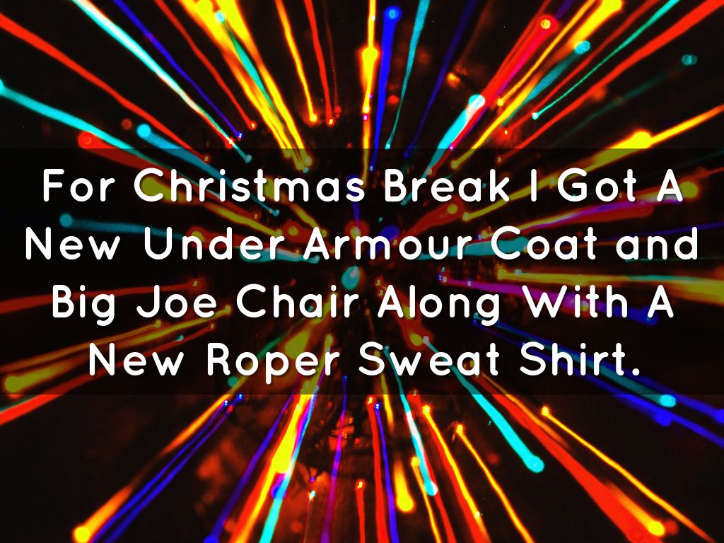 For Christmas Break I Got A New Under Armour Coat and Big Joe Chair Along With A New Roper Sweat Shirt.