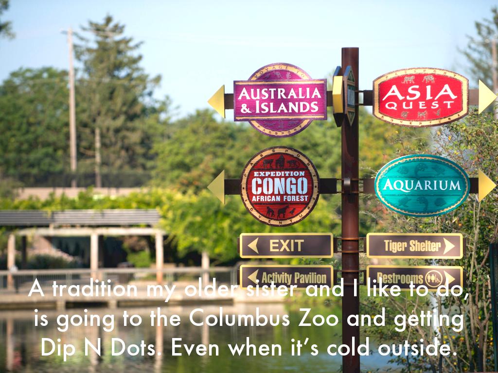 A tradition my older sister and I like to do, is going to the Columbus Zoo and getting Dip N Dots. Even when it’s cold outside.