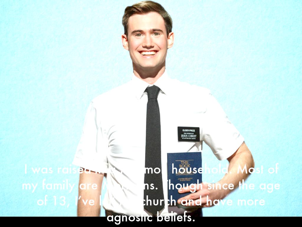 I was raised in a Mormon household. Most of my family are Mormons. Though since the age of 13, I’ve left the church and have more agnostic beliefs.