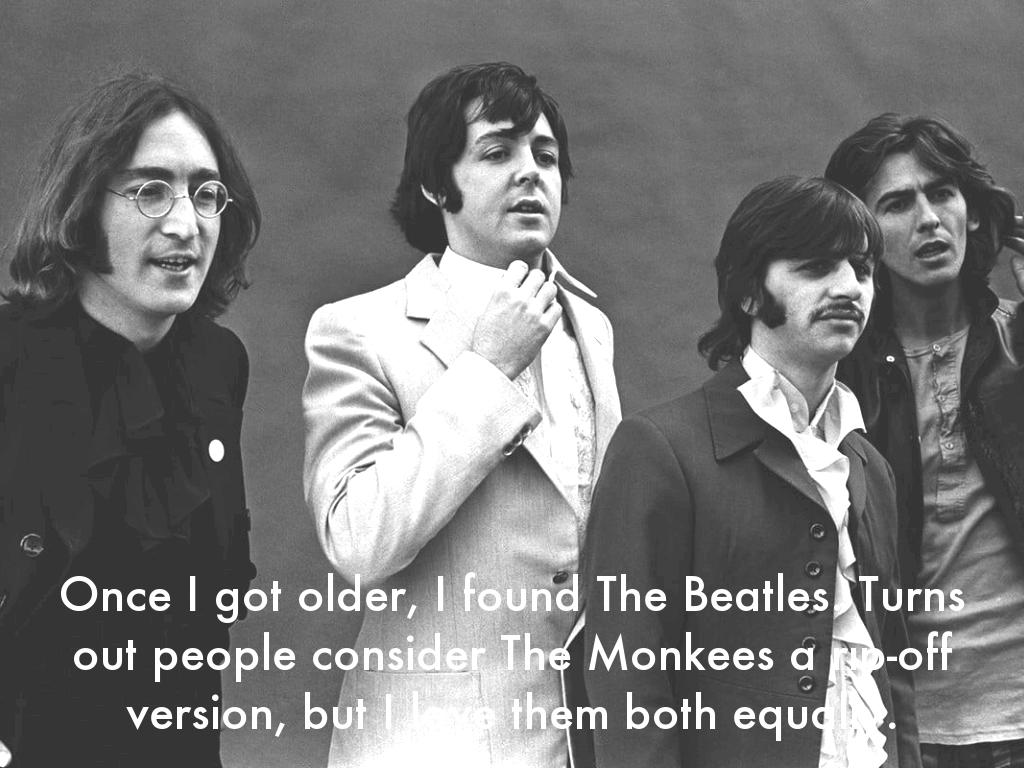 Once I got older, I found The Beatles. Turns out people consider The Monkees a rip-off version, but I love them both equally.
