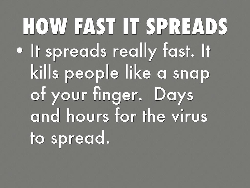 It spreads really fast. It kills people like a snap of your finger. Days and hours for the virus to spread.