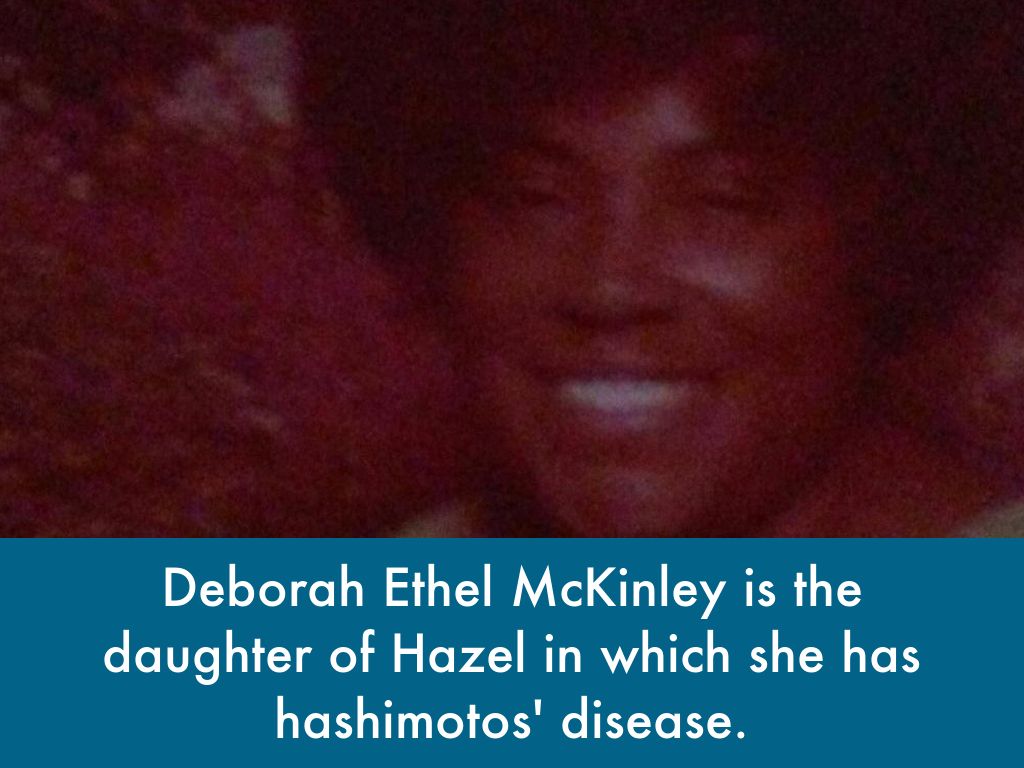 Deborah Ethel McKinley is the daughter of Hazel in which she has hashimotos' disease.
