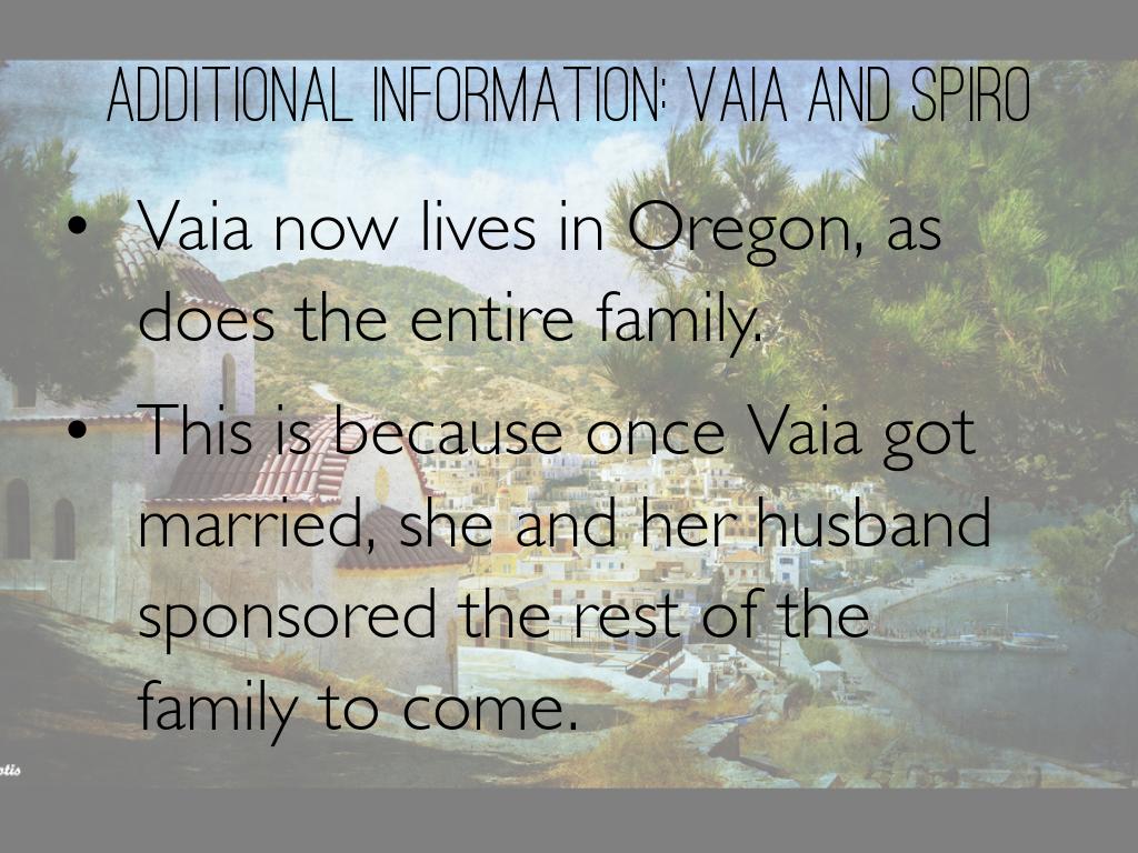 • This is because once Vaia got married, she and her husband sponsored the rest of the family to come.