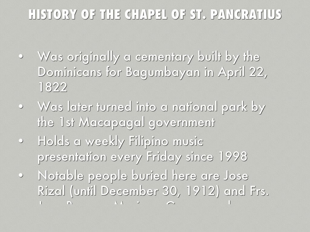 HISTORY OF THE CHAPEL OF ST. PANCRATIUS