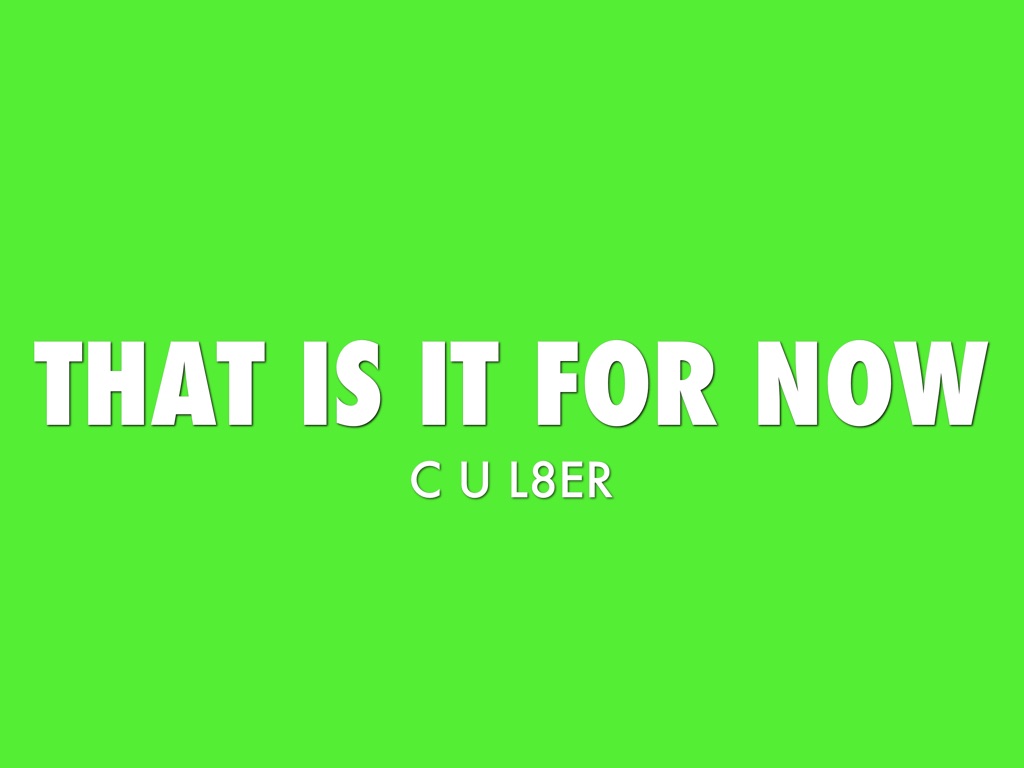 THAT IS IT FOR NOW