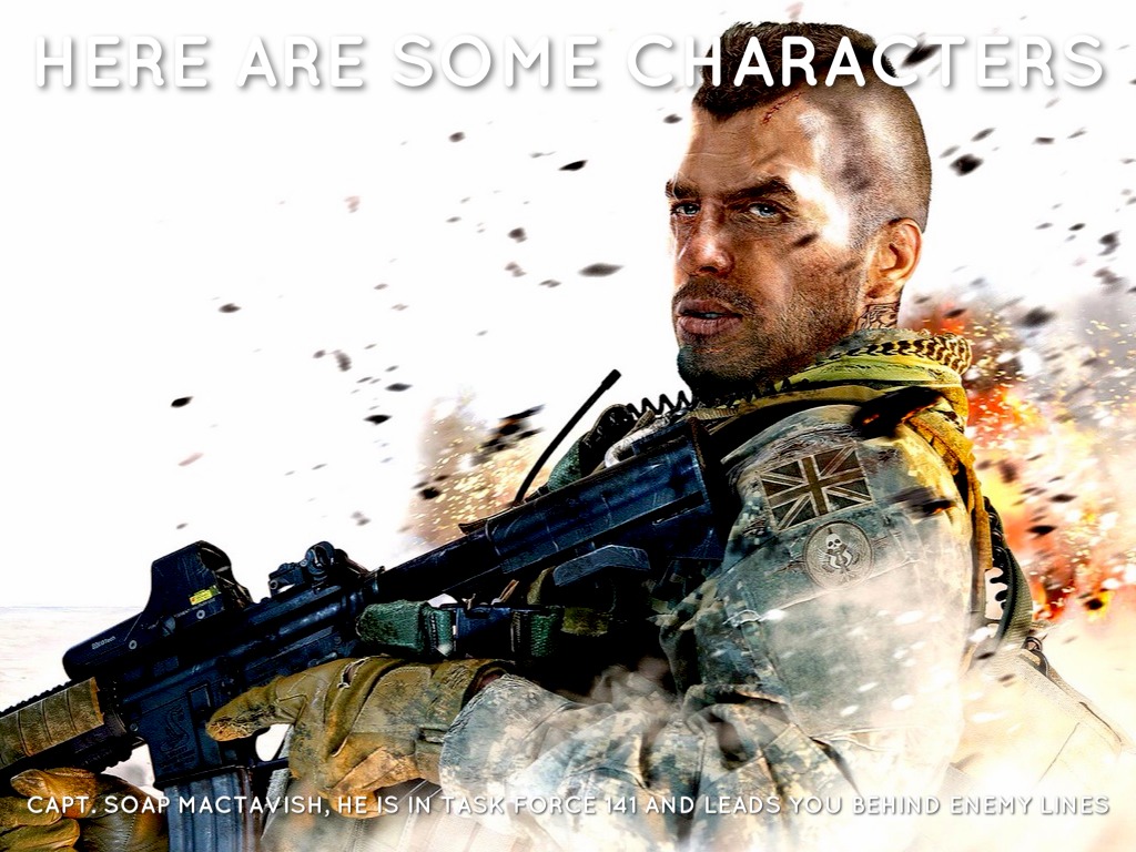CAPT. SOAP MACTAVISH, HE IS IN TASK FORCE 141 AND LEADS YOU BEHIND ENEMY LINES