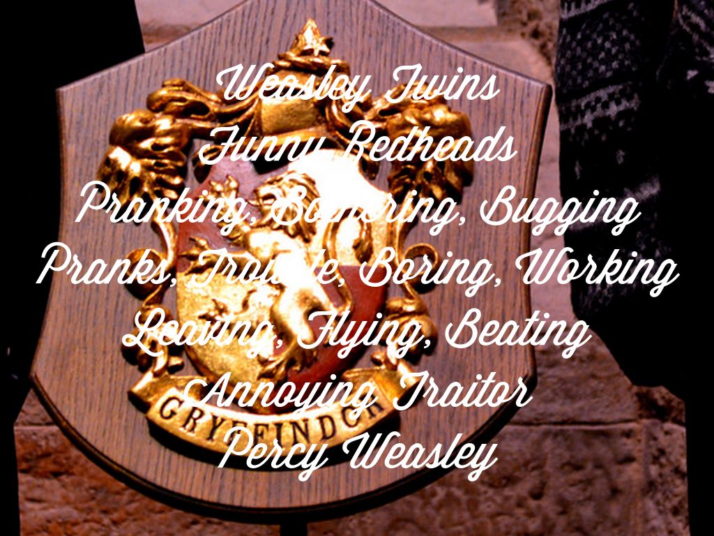 Gryffindors are brave, red students willingly fighting. Gryffindors are yellow Godrics that are willing to fight adventurously. Gryffindors are strong Hogwartsians admirably honoring the dead.