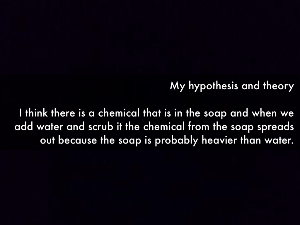 I think there is a chemical that is in the soap and when we add water and scrub it the chemical from the soap spreads out because the soap is probably heavier than water.