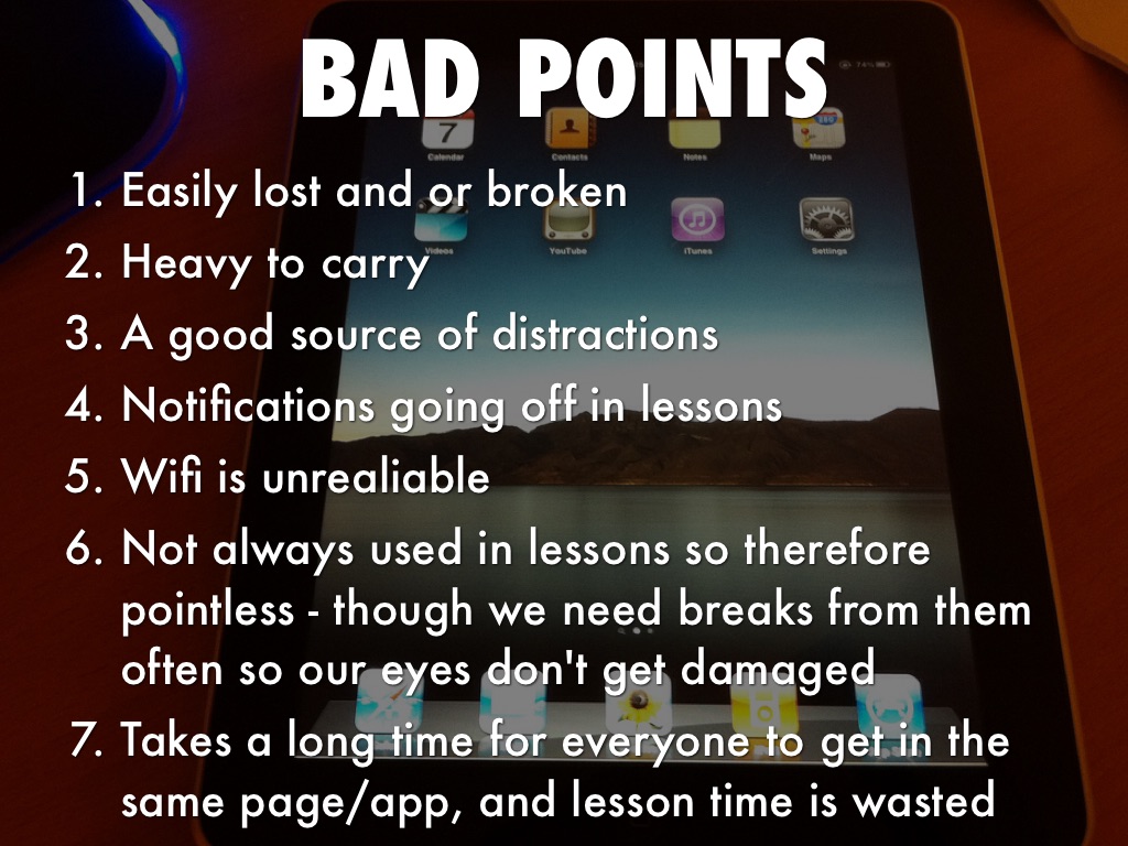 Not always used in lessons so therefore pointless - though we need breaks from them often so our eyes don't get damaged