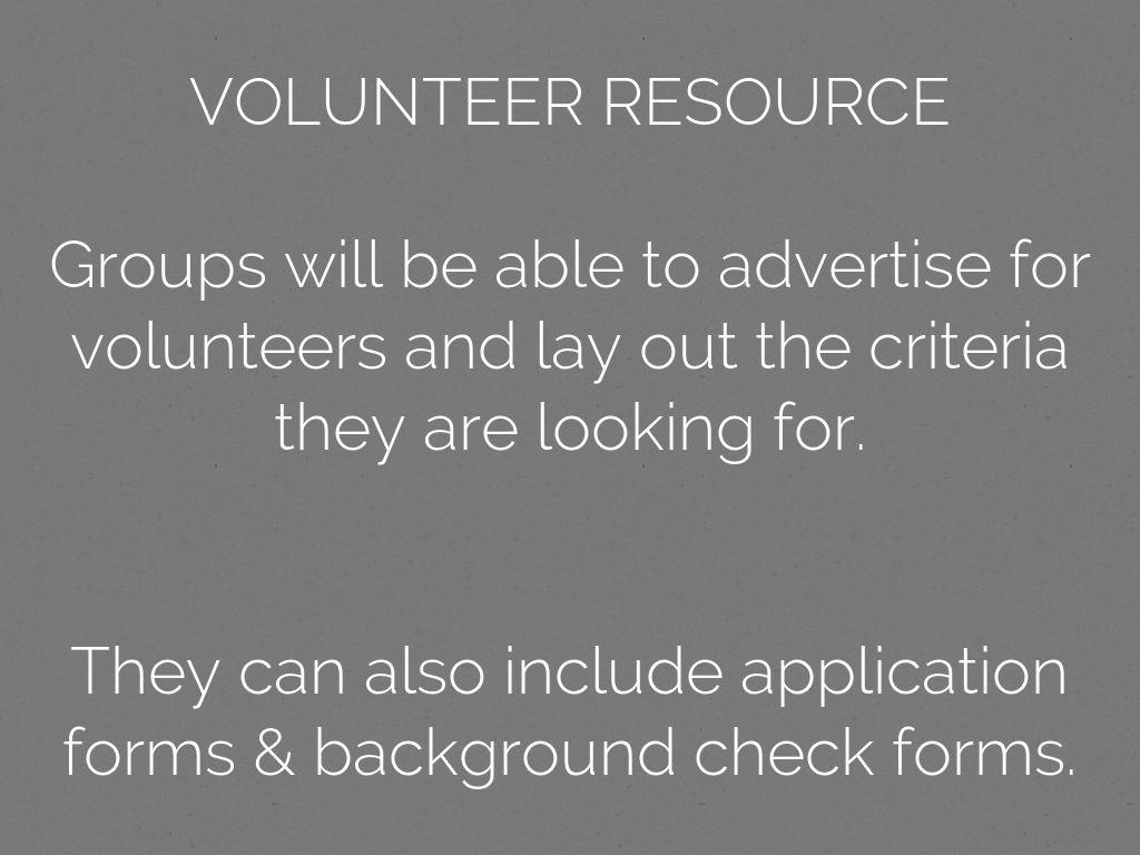 Groups will be able to advertise for volunteers and lay out the criteria they are looking for.